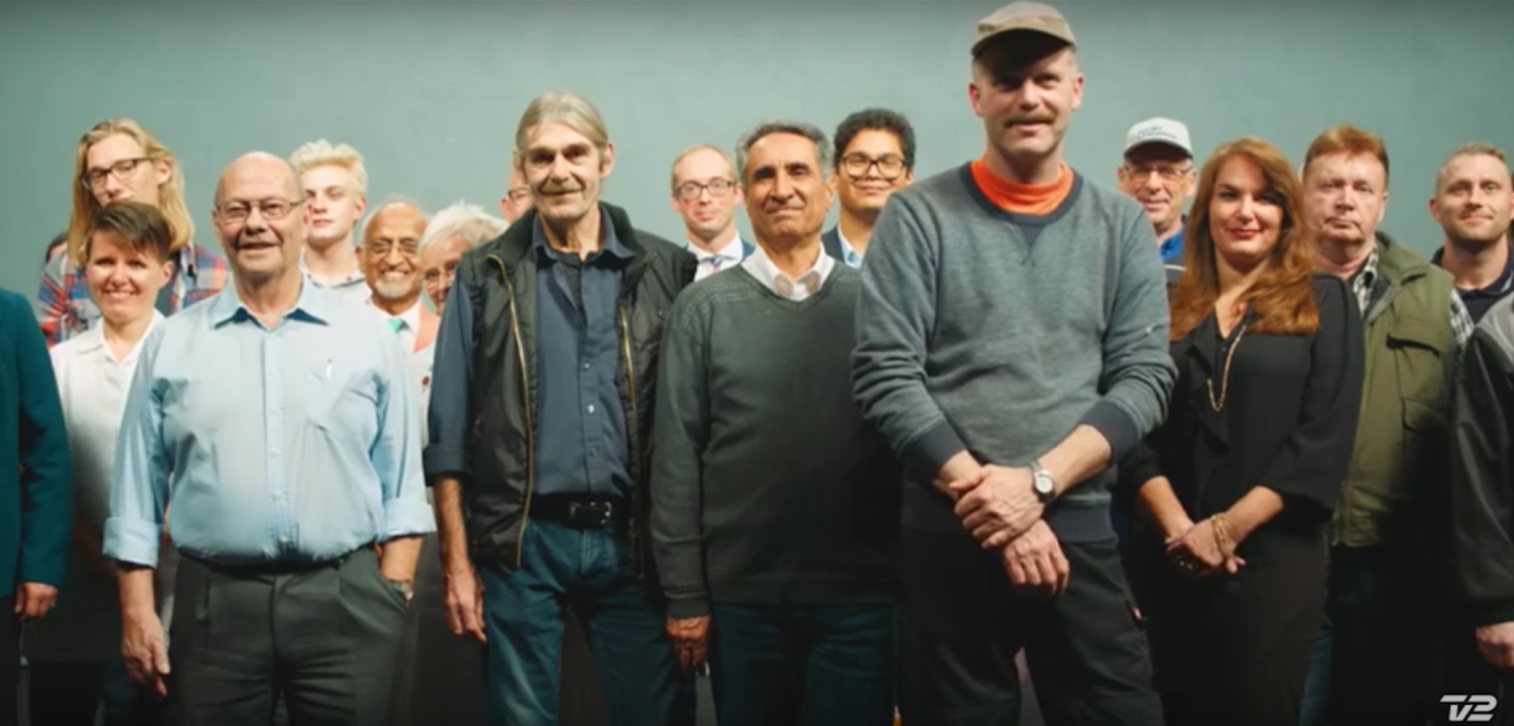 Then the participants—Danish from all walks of life—were grouped into the class clowns, the lonely people, those who believe in life after death, those who loved to dance, the brokenhearted ones, the bisexuals, those who love Denmark among others. It ended with the remark, “So maybe there’s more that brings us together than we think.”